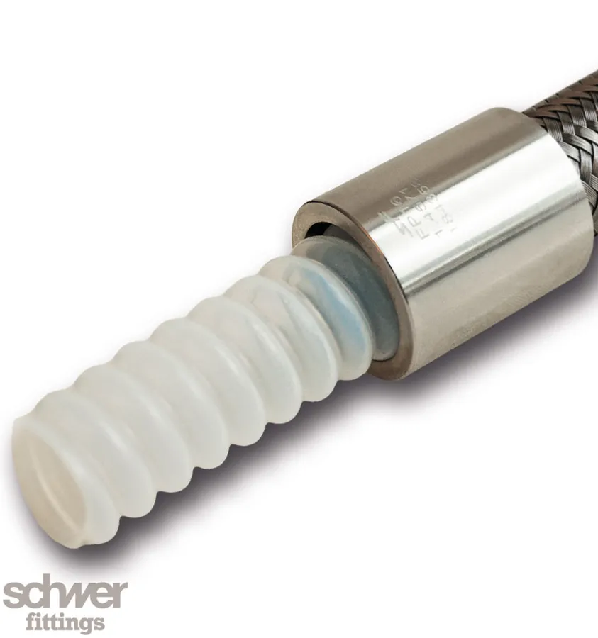 Wherever corrosive and aggressive media have to be conveyed, stainless steel pipework systems and fittings have become increasingly important. This applies in particular to hose fittings and hydraulic adapters. Through targeted expertise, fittings and sockets are developed that cover a wide variety of hose types with one fitting.